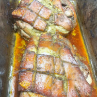 Roasted Pork Shoulder w/cheese, lettuce, tomato, potato sticks, PapiVivi sauce
